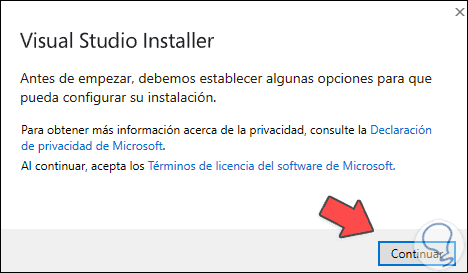 Allí damos clic en "Continuar" para descargar e instalar Visual Studio 2022 Preview: