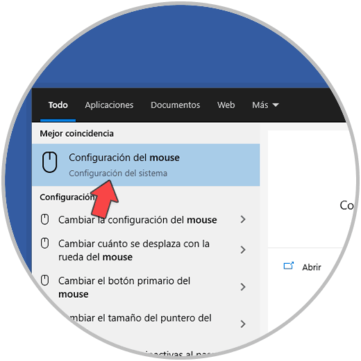 Seleccionamos "Configuración del mouse", se abrirá lo siguiente:
