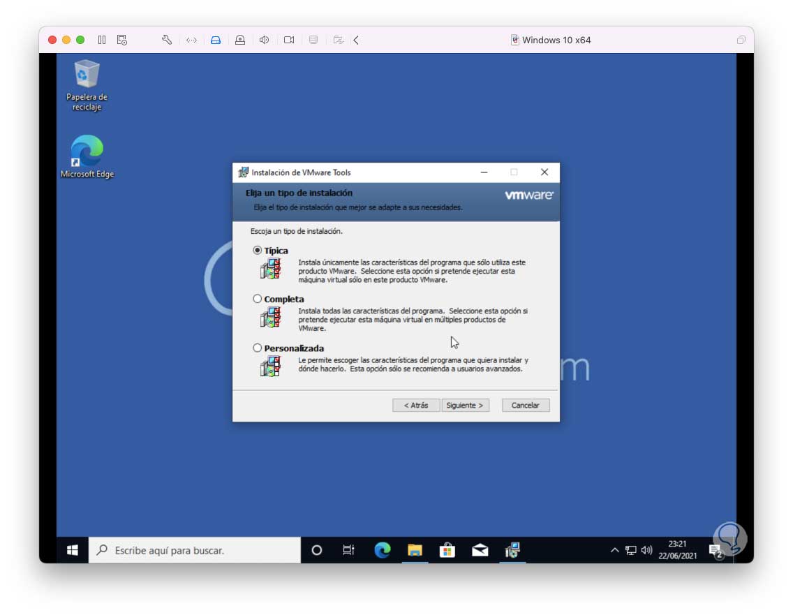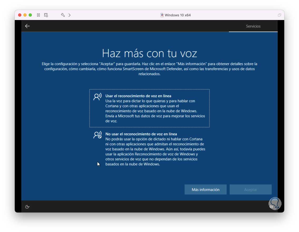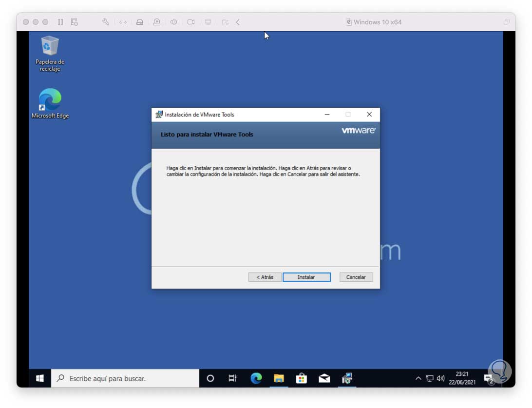 Damos clic en "Siguiente" para iniciar la instalación de Windows 10 en VMware Fusión en macOS: