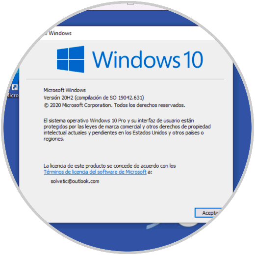 Usamos el comando "winver" para ver la versión de Windows 10 instalada: