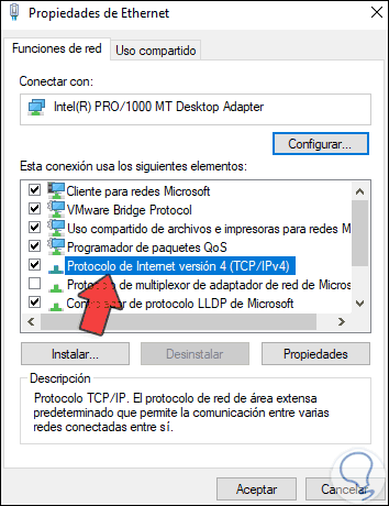 En la ventana emergente Selecciona el protocolo IPv4: