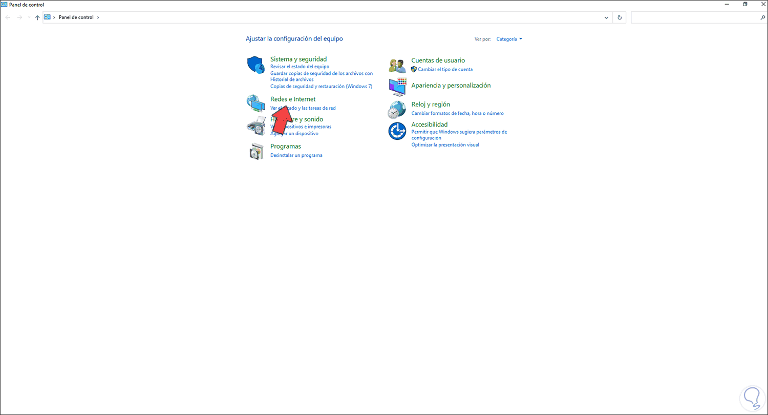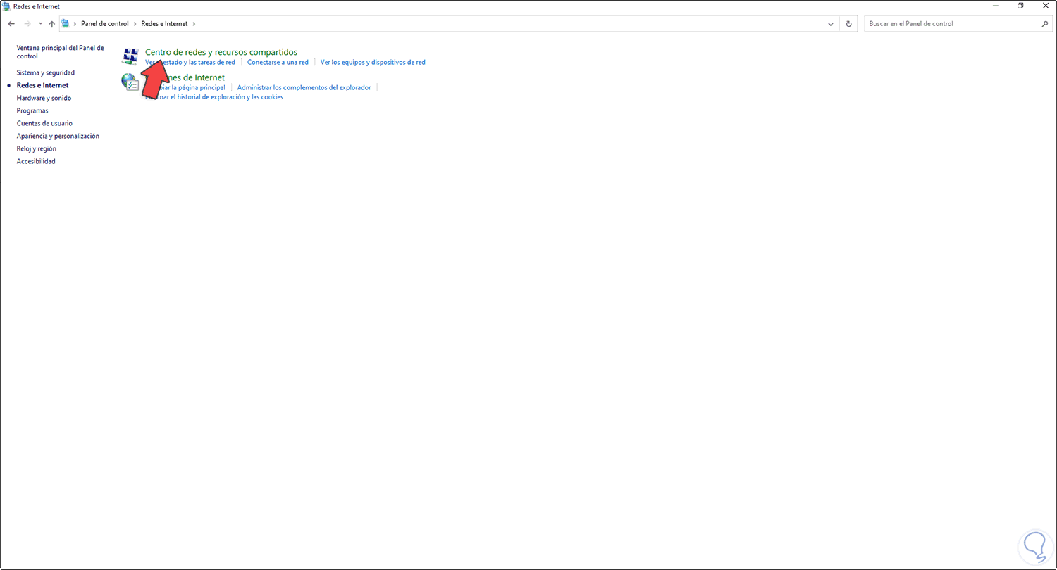Damos clic en “Redes e Internet” para ver lo siguiente: