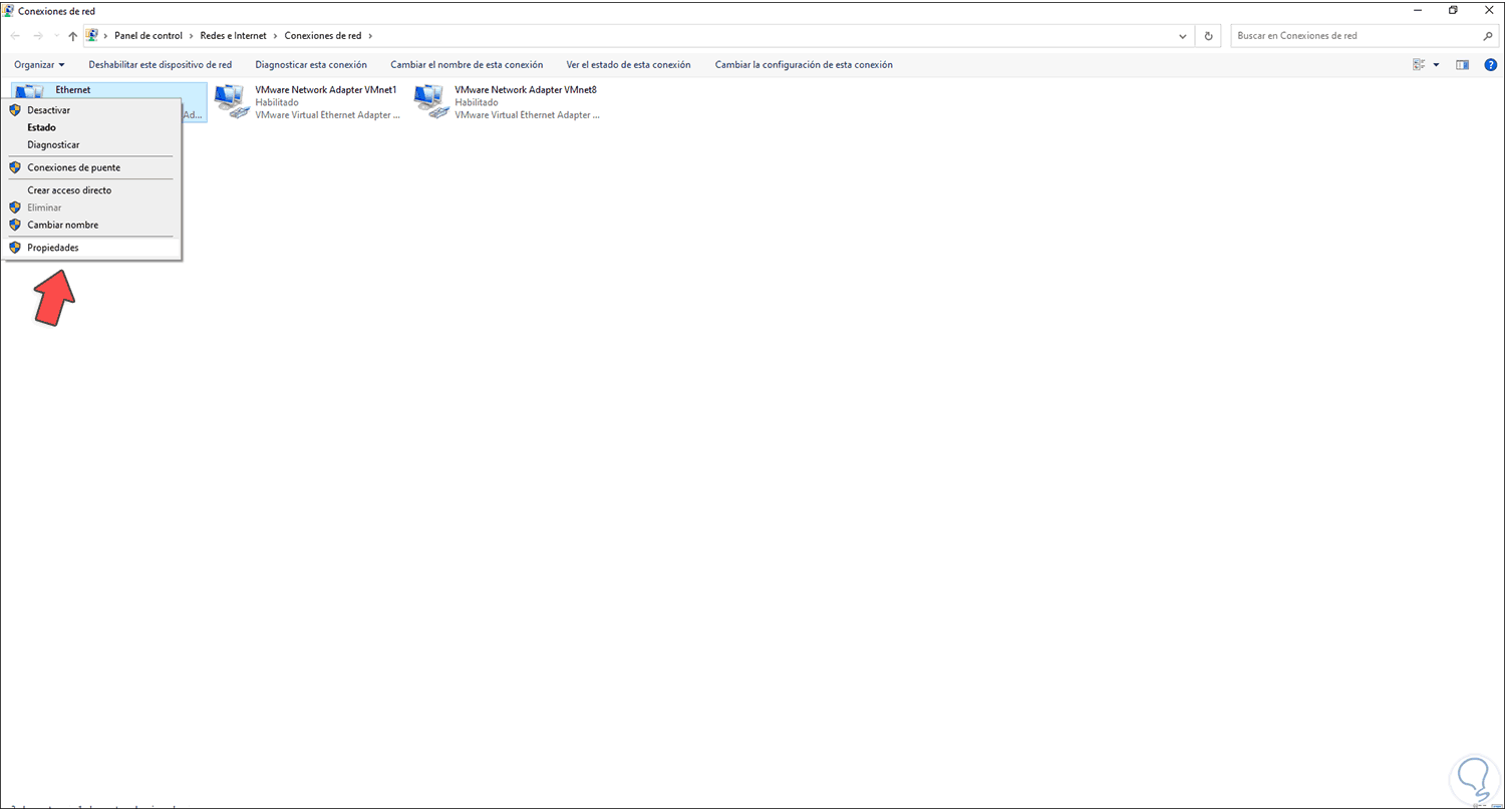 Damos clic en "Propiedades" y veremos lo siguiente: