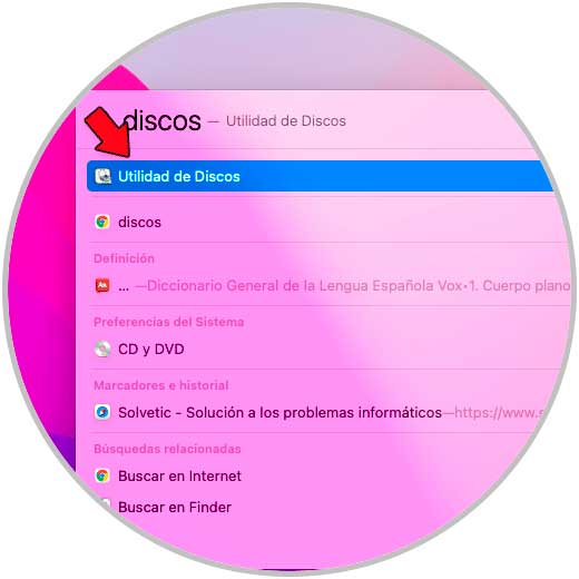 Para iniciar abrimos la Utilidad de discos con alguna de las siguientes opciones:
