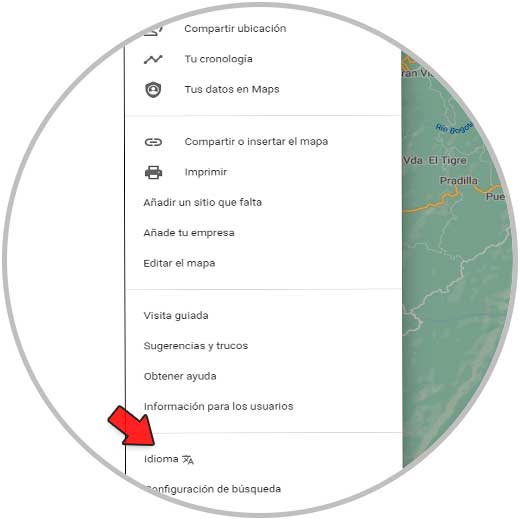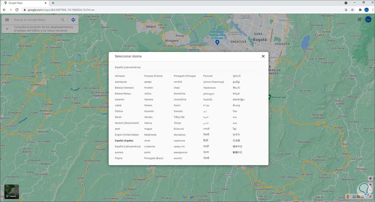 Allí selecciona el nuevo idioma, Google Maps cargará de nuevo para aplicar los cambios con el nuevo idioma: