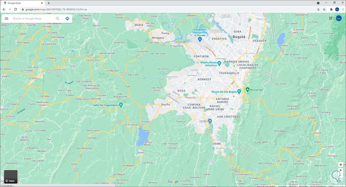 Ahora si el objetivo es cambiar el país predeterminado en Google Maps, en la esquina inferior derecha vemos el país por defecto (primera línea de izquierda a derecha):