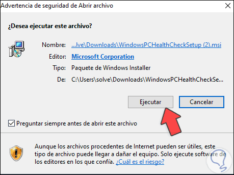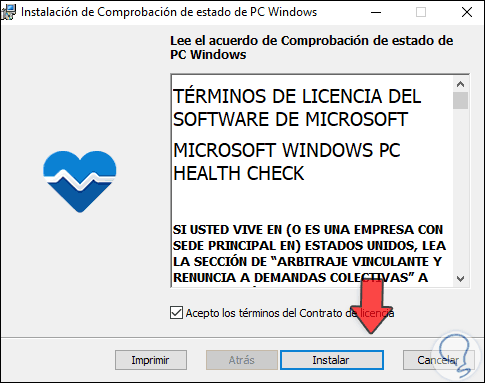 Una vez descargada, ejecutamos el instalador y debemos aceptar la instalación:
