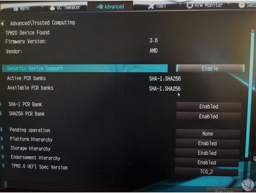 Vamos a ver como comprobar si nuestro equipo es compatible con TPM 2.0 y si no es así activarlo en la BIOS o UEFI (si contamos con esa opción)