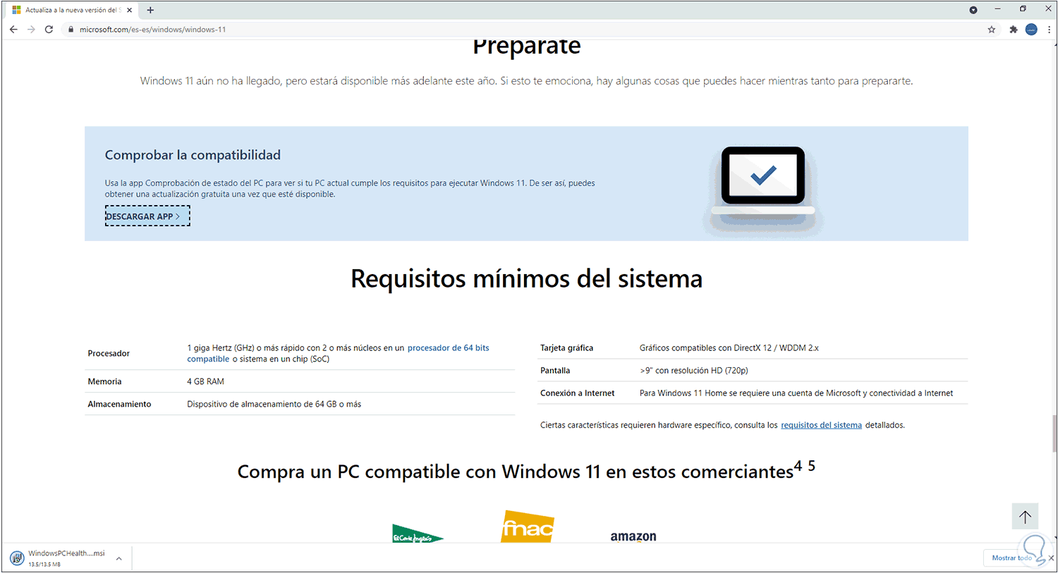 Allí encontramos los requisitos mínimos para usar Windows 11: