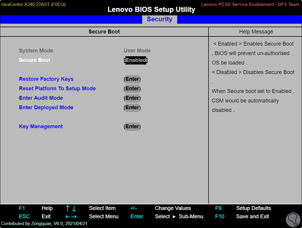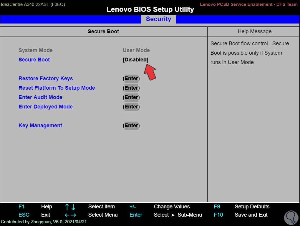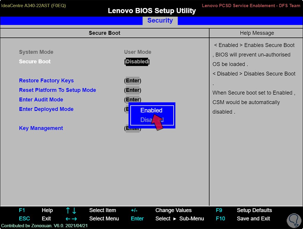Seleccionamos de nuevo Secure Boot y pulsamos Enter: