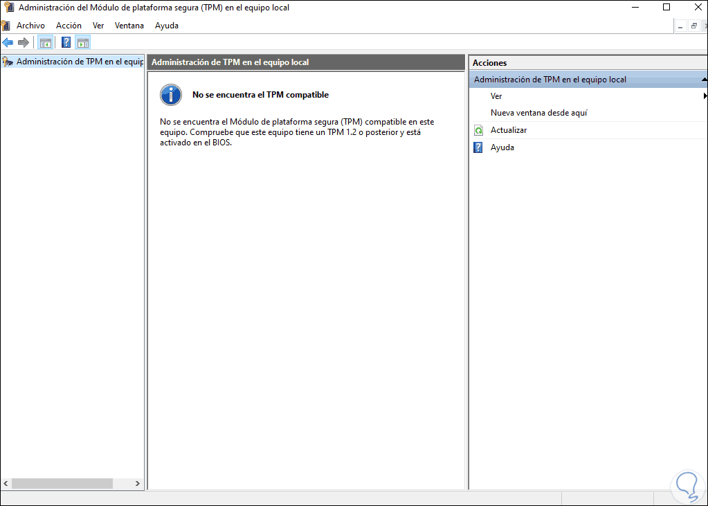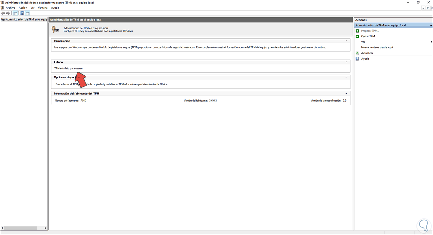 Damos clic en Aceptar para ver el estado de TPM y el resultado será el siguiente: