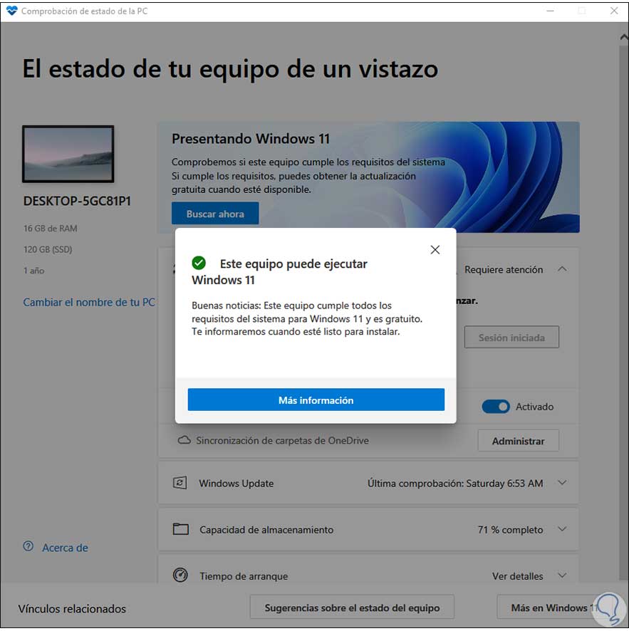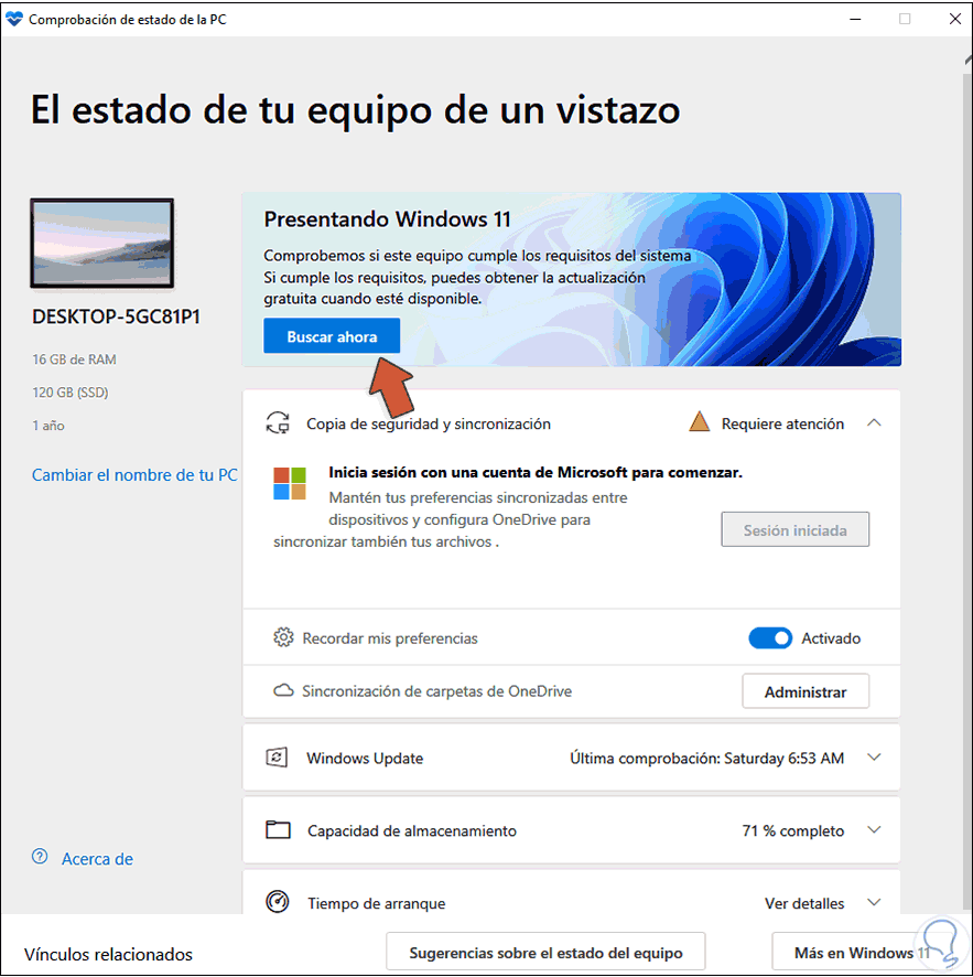 Damos clic en "Buscar ahora" y nuestro Windows 10 estará listo para ser actualizado a Windows 11: