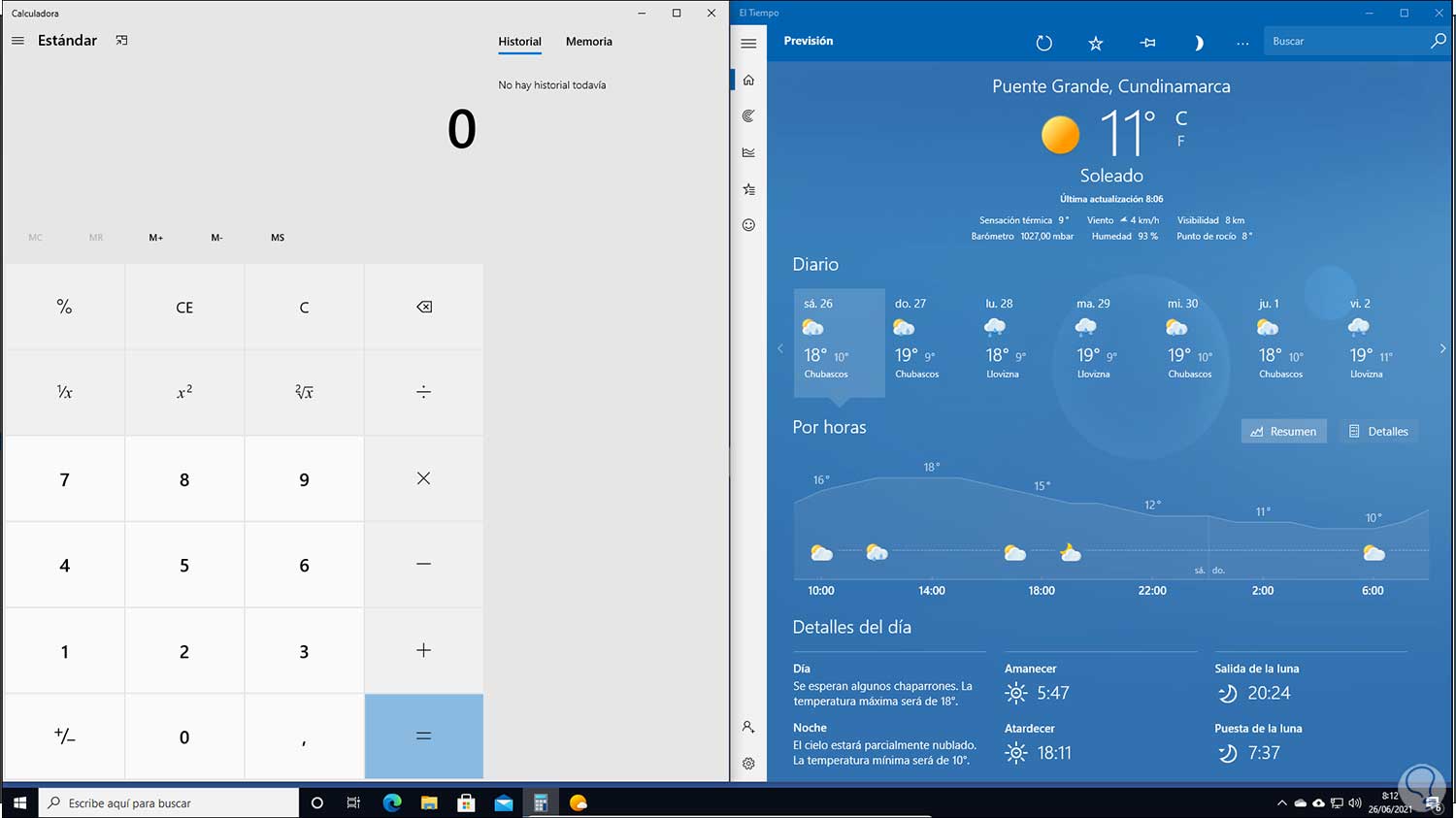 En el escritorio de Windows 10 vemos las apps abiertas: