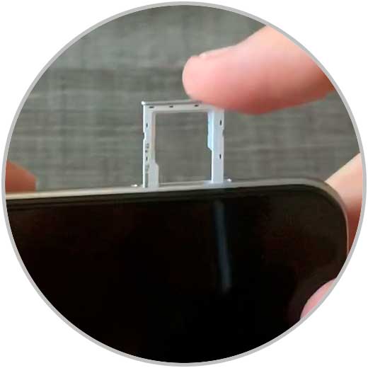 Ahora fíjate en el lateral del teléfono y verás que hay un pequeño agujero. Debemos hacer presión en el agujero con el pincho y debe sobresalir una pequeña bandeja.