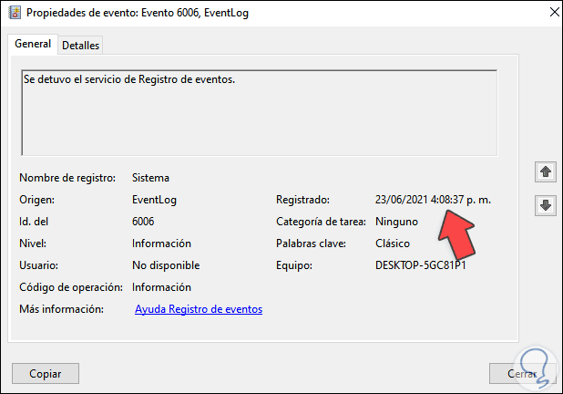 2. Ver historial apagado e inicio de sesión Windows 10 desde aplicación