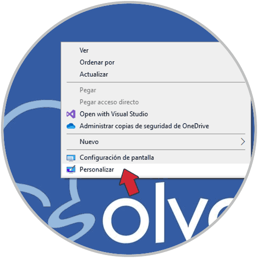 Damos clic derecho en el escritorio y seleccionamos la opción "Personalizar":