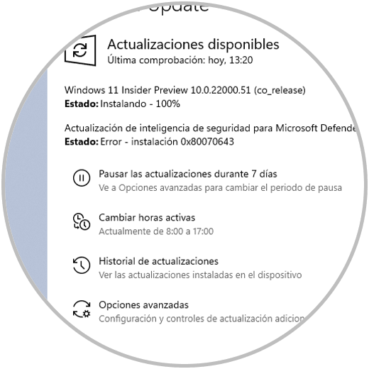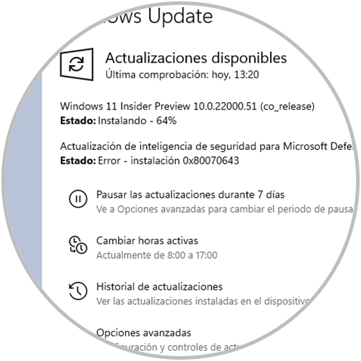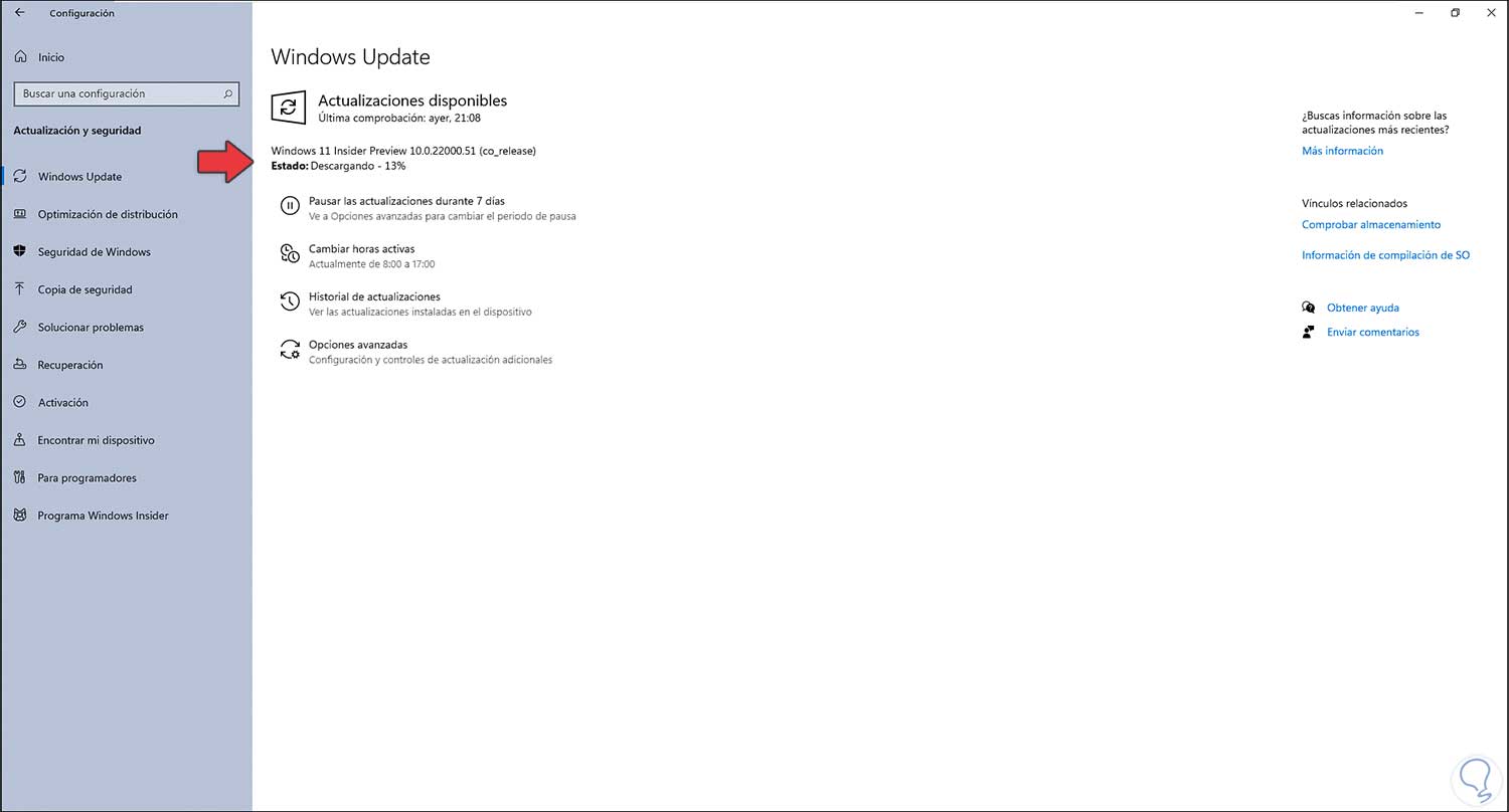 Vamos a "Windows Update" y la descarga de Windows 11 Insider Preview estará en proceso de descarga: