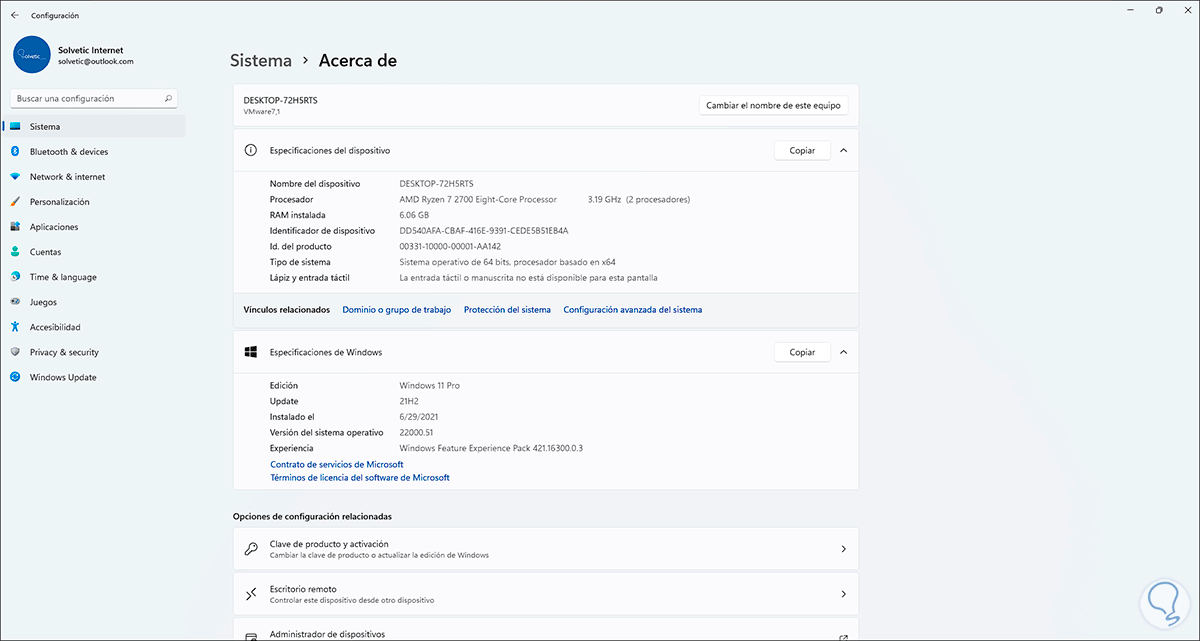 Cada una de etas opciones nos da la posibilidad de ver las propiedades del sistema en Windows 11.