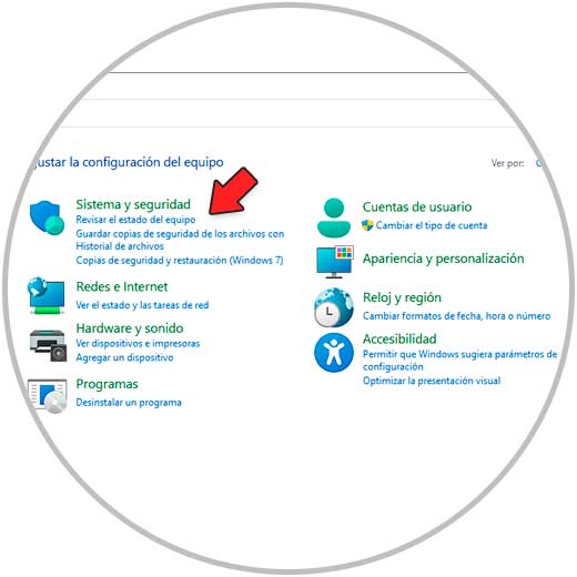 Veremos lo siguiente. Vamos a "Sistema y seguridad - Sistema":