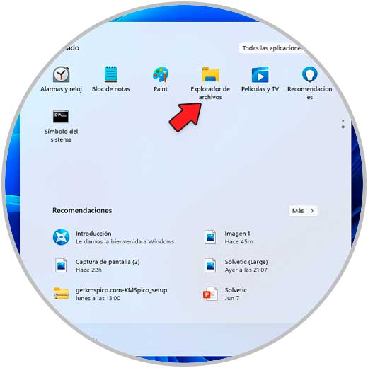 Este primer paso es simple y funcional, abrimos el Explorador de archivos desde el menú inicio: