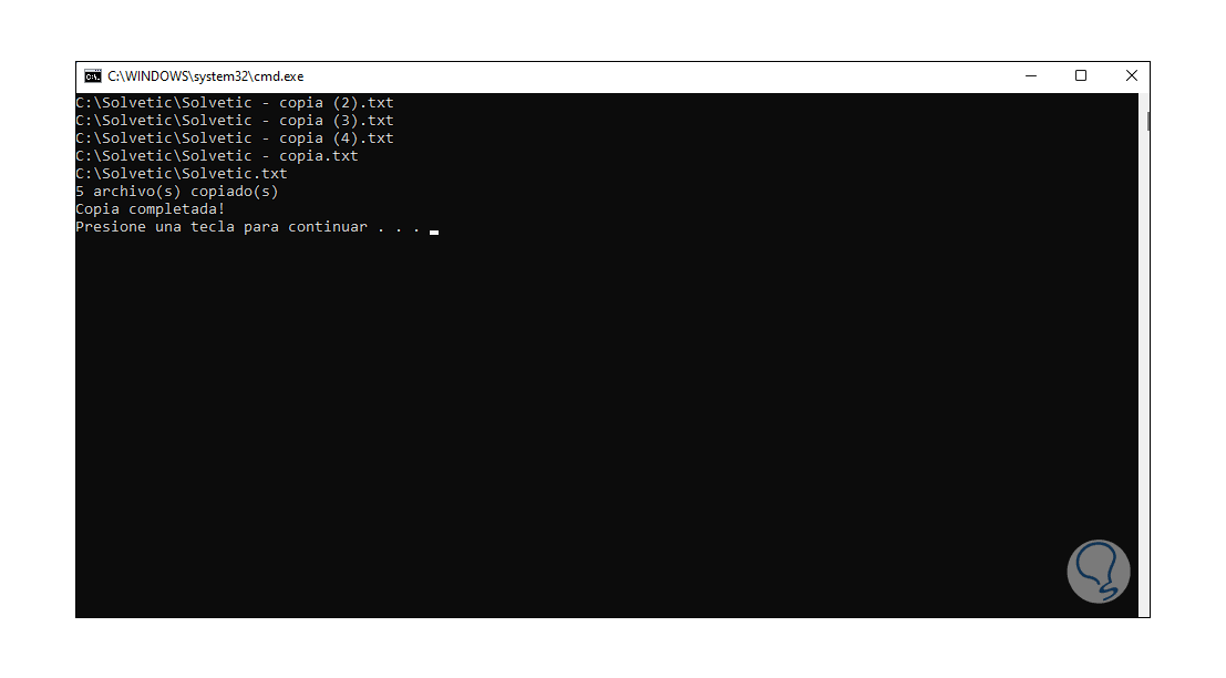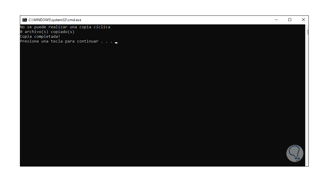 Ejecuta el .bat , si los archivos están en la misma carpeta veremos un error cíclico y ningún archivo será copiado: