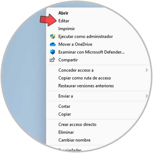 Edita el archivo .bat dando clic derecho sobre el para ver lo siguiente:
