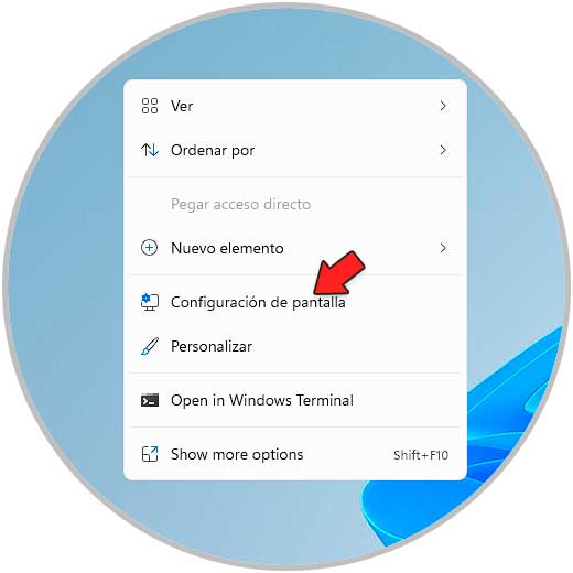 Para usar esta opción, Da clic derecho en el escritorio y allí seleccionamos "Configuración de pantalla":