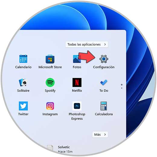 Configuración siempre será un punto central para diversas configuraciones, abrimos Configuración en Windows 11: