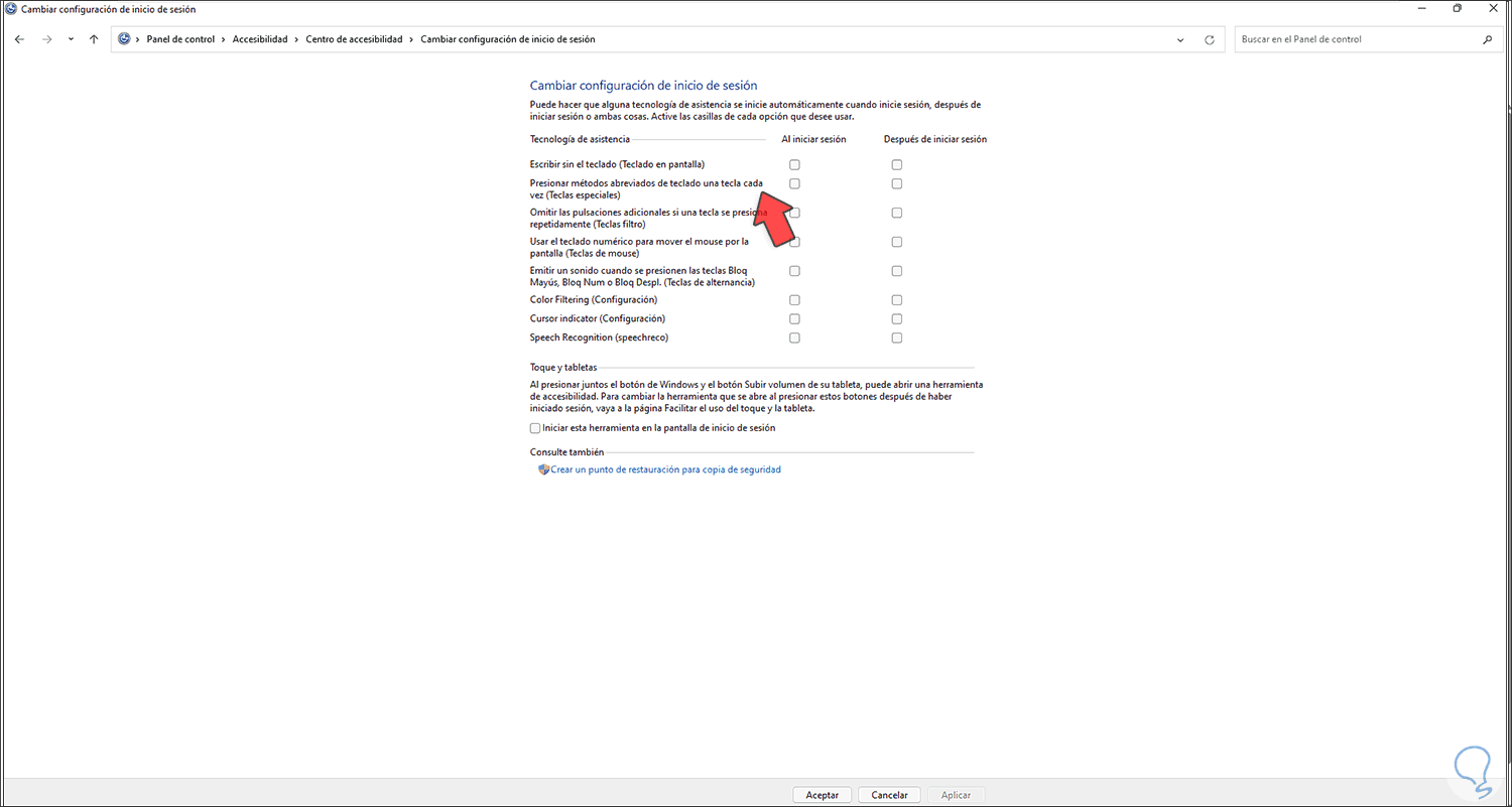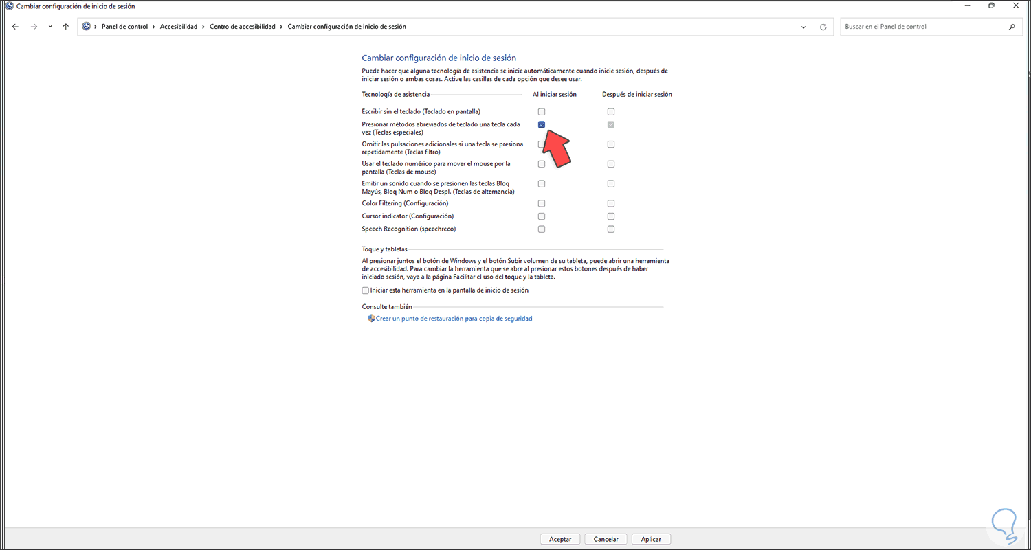 3. Activar teclas especiales Windows 11 desde Panel de control