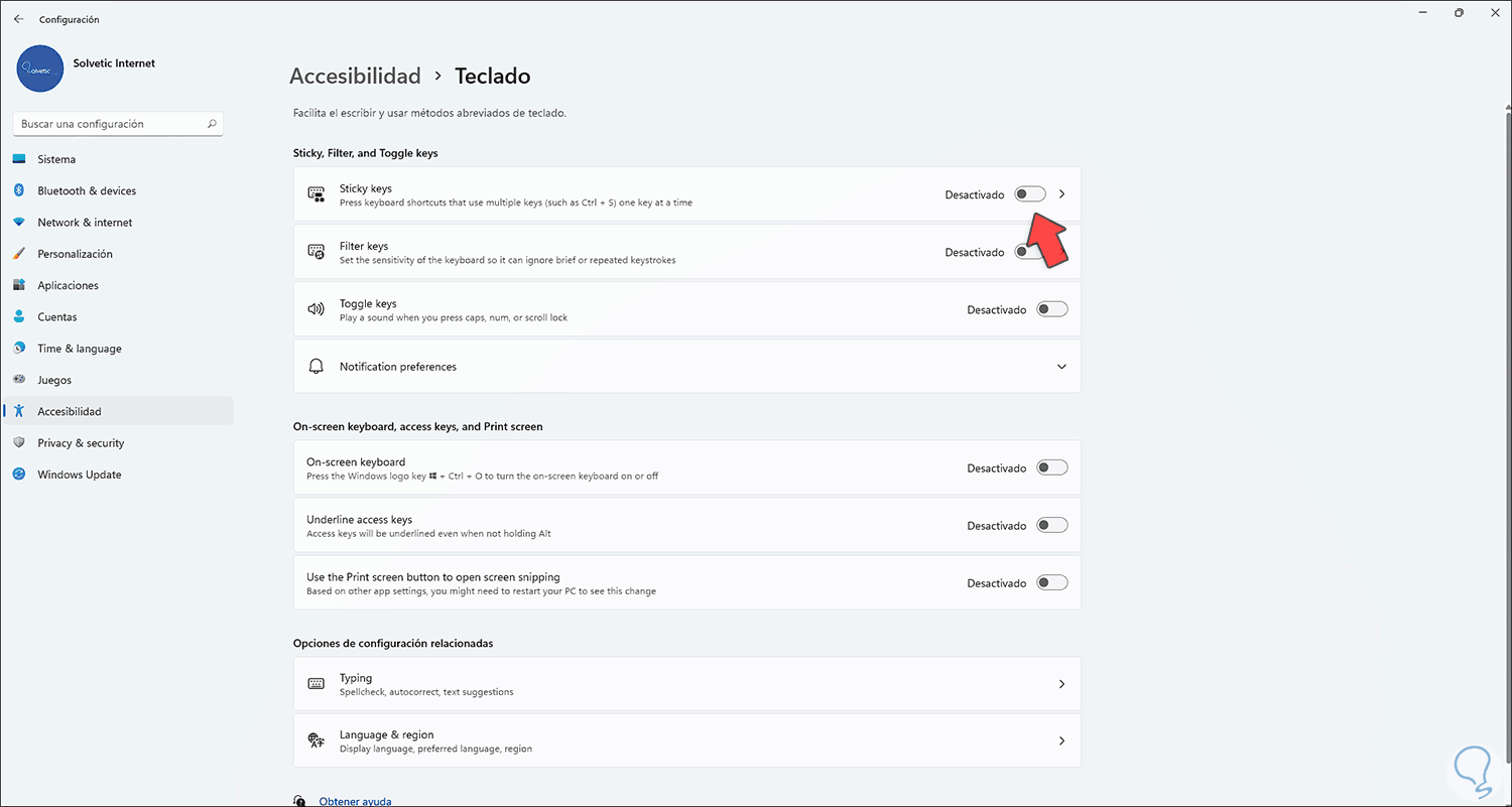 Estas son las formas disponibles para activar o no las Teclas especiales en Windows 11.