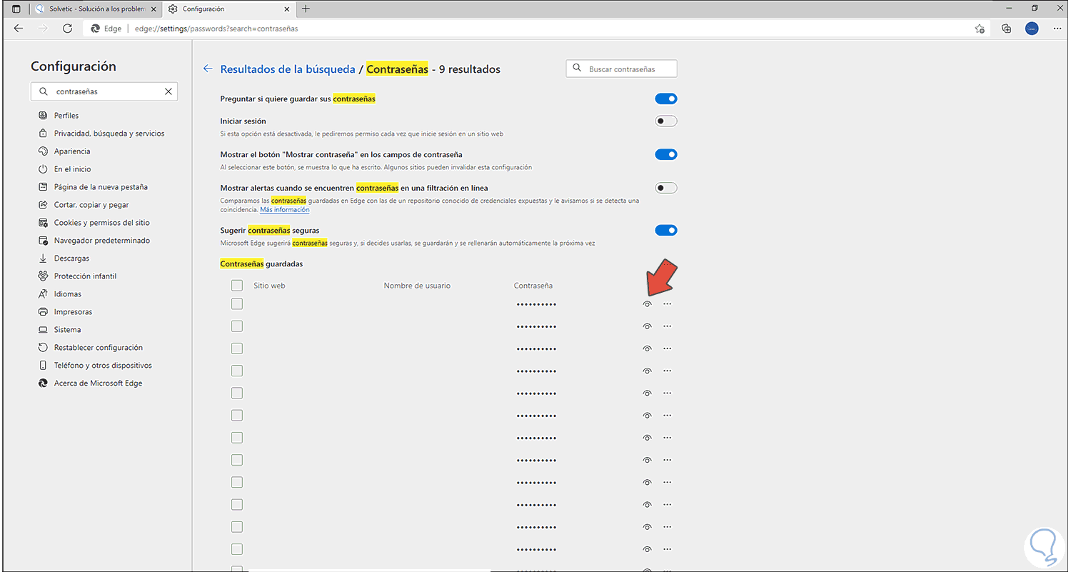 Accedemos a las opciones disponibles (web y Windows) para ver las contraseñas alojadas, estas son:
