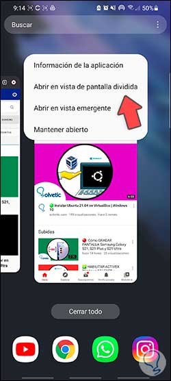 Ahora selecciona una de las aplicaciones que quieres ver en la pantalla dividida. En este caso elegiremos “Chrome”.
