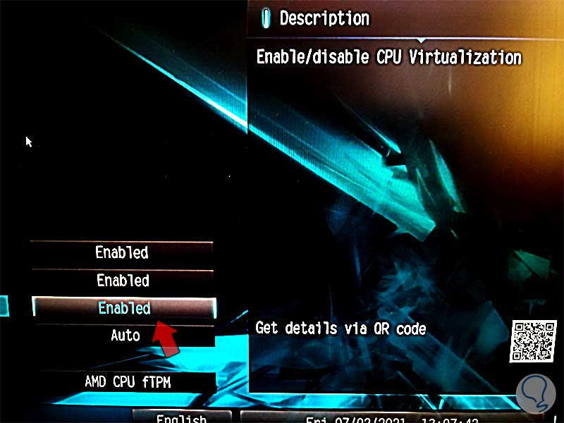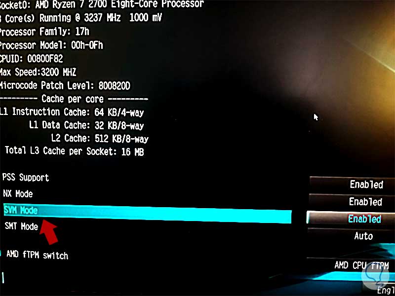 Al dar clic allí, la línea "SVM Mode" debe estar en "Enabled":