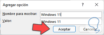 Damos clic en Aceptar para insertar esta opción: