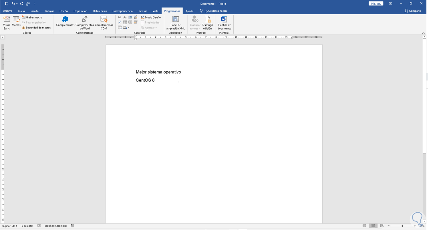 Aplicamos los cambios y ahora dispondremos del menú Programador en Word: