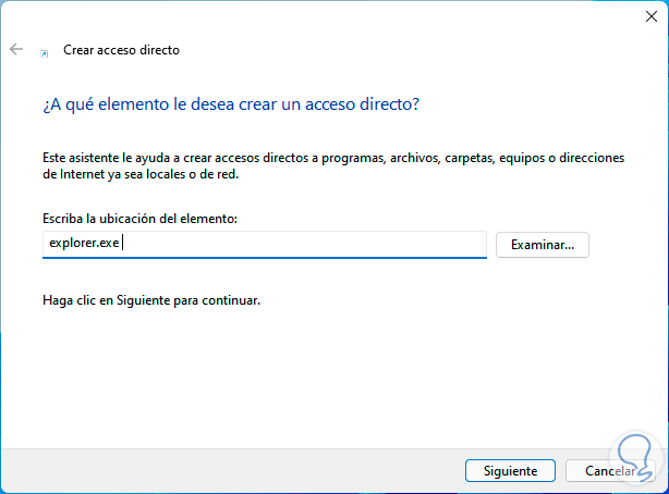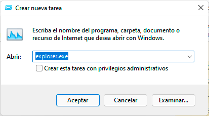 Ingresamos "explorer.exe" en la ventana emergente: