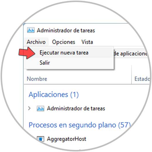 En caso de que el reinicio no cumpla su misión, podemos finalizar el proceso por completo y luego crearlo de nuevo, para ello vamos el Administrador de tareas: