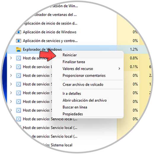 1. Reiniciar explorer.exe Windows 11 con Administrador de tareas