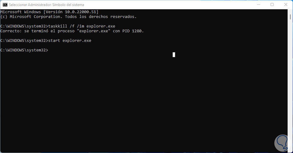 2. Reiniciar explorer.exe Windows 11 CMD