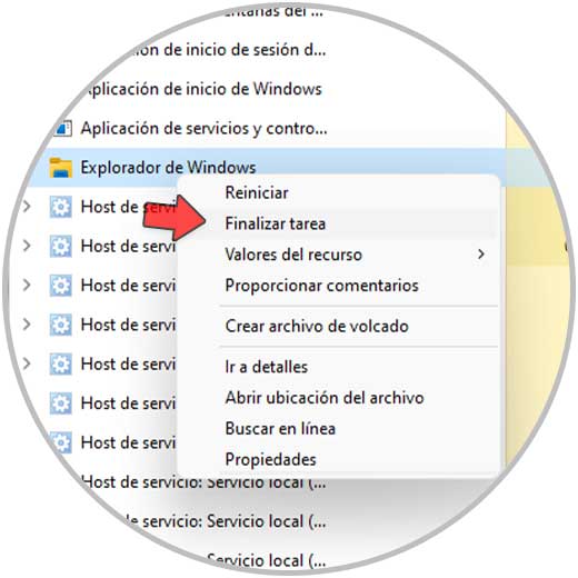 4. Cerrar proceso explorer.exe Windows 11