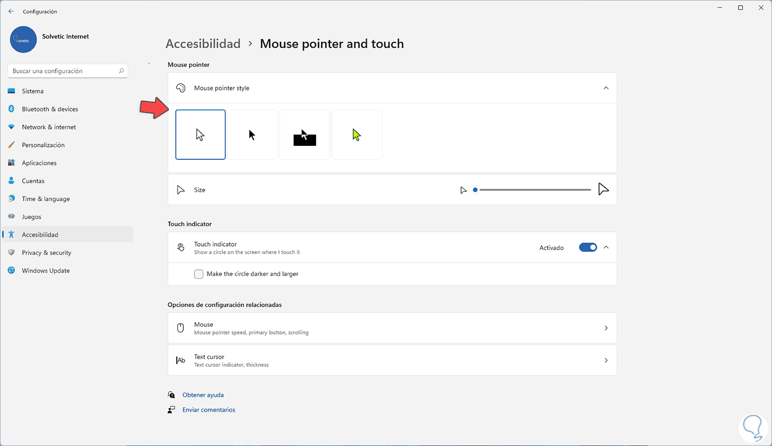 Cambiar el puntero del mouse Windows 11