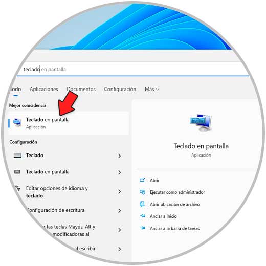 En caso de continuar con el bloqueo o desactivación del teclado y sea necesario usarlo. Podemos recurrir al teclado en pantalla el cual nos permite ejecutar las mismas acciones del teclado físico, para esto en el menú Inicio buscamos "teclado":