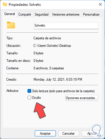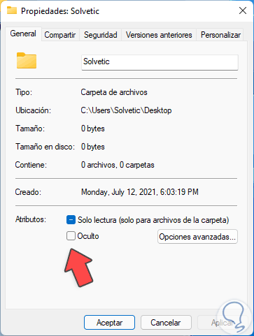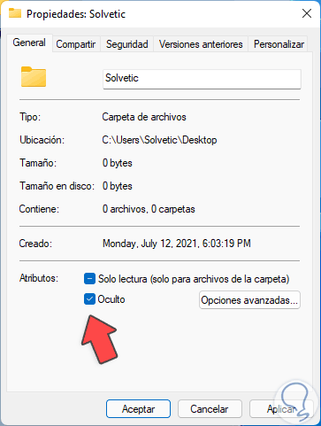 Aplica los cambios para que la carpeta sea de nuevo visible: