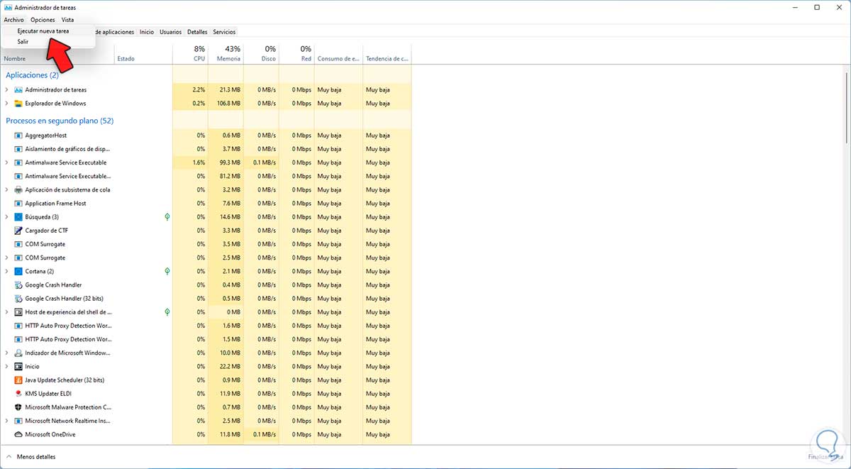 Otro método disponible es usar el Administrador de tareas, abre el Administrador de tareas: