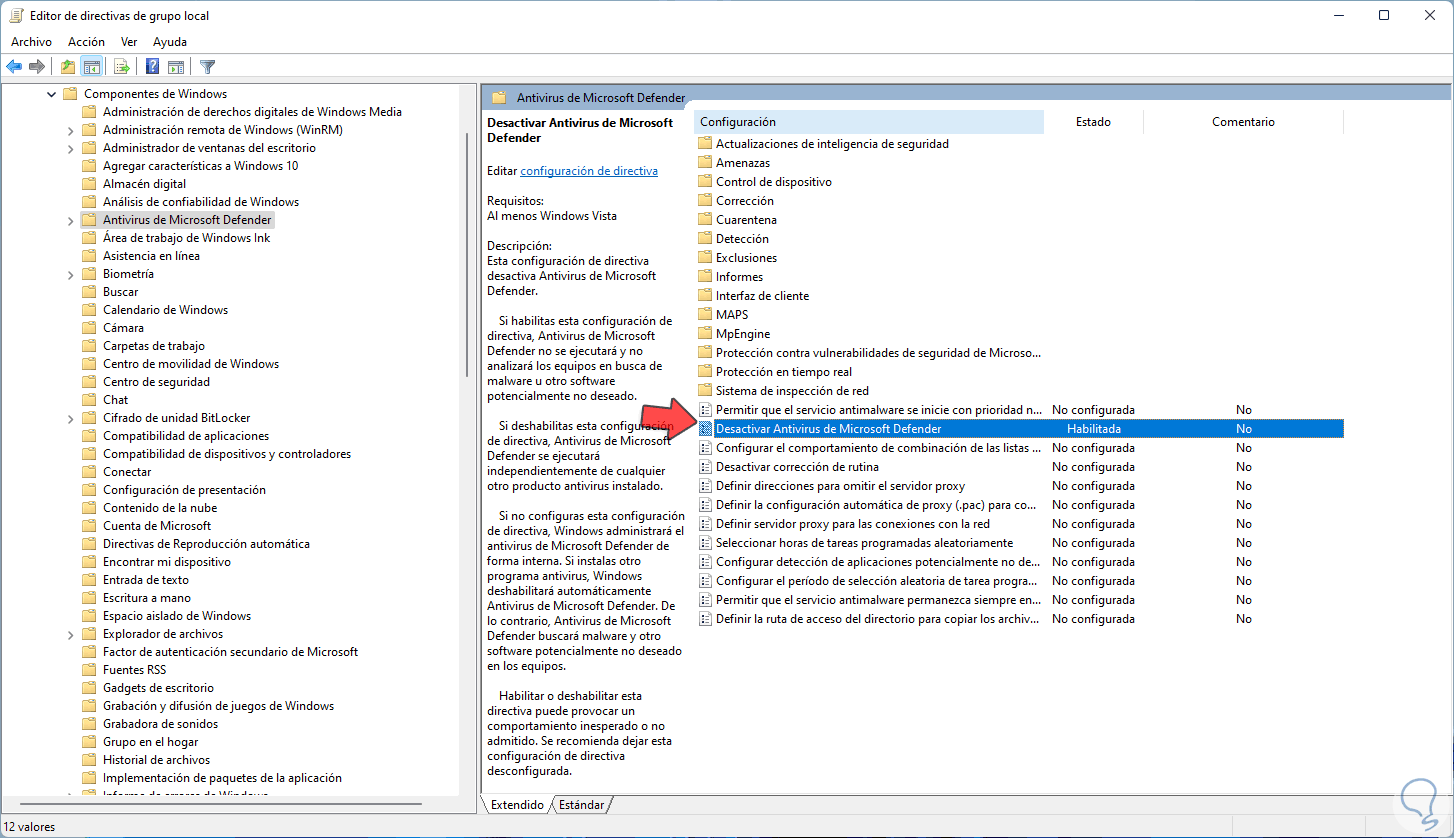 2. Desactivar Windows Defender Windows 11 desde Editor de directivas