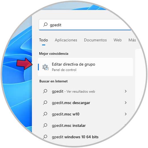 Esta es una opción disponible en las ediciones Pro y Enterprise de Windows 11, ingresa "gpedit" en el buscador de Inicio: