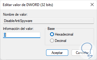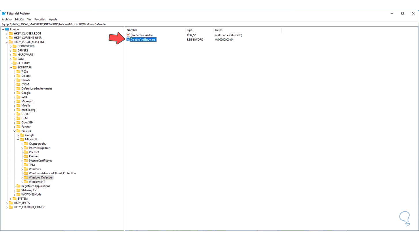 3. Desactivar Windows Defender Windows 11 desde Editor de registros
