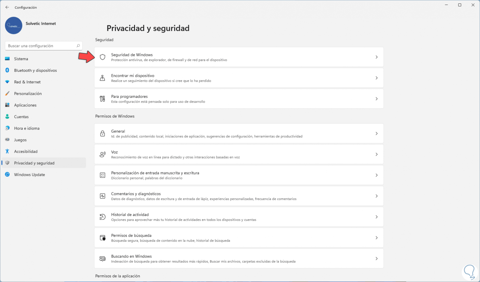 Vamos a "Privacidad y seguridad - Seguridad de Windows"