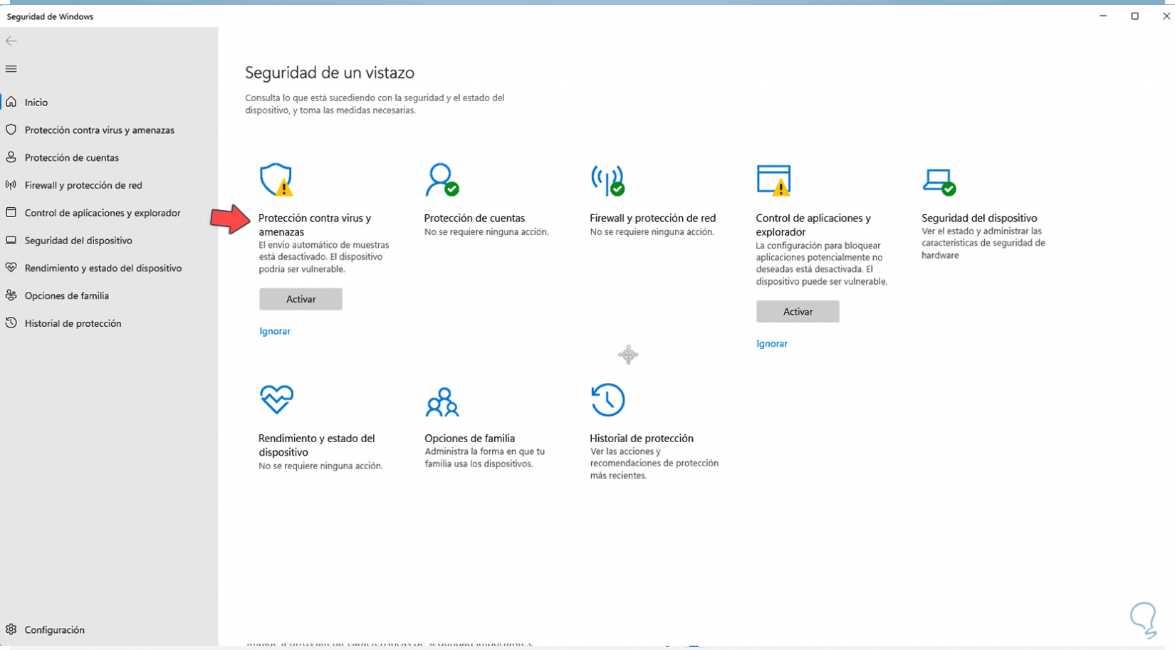 Al dar clic en Seguridad de Windows veremos lo siguiente: