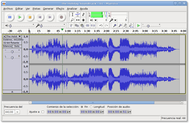 Desde el menú Archivo, podemos importar un mp3, o grabar cualquier pista de audio mono o estéreo.
